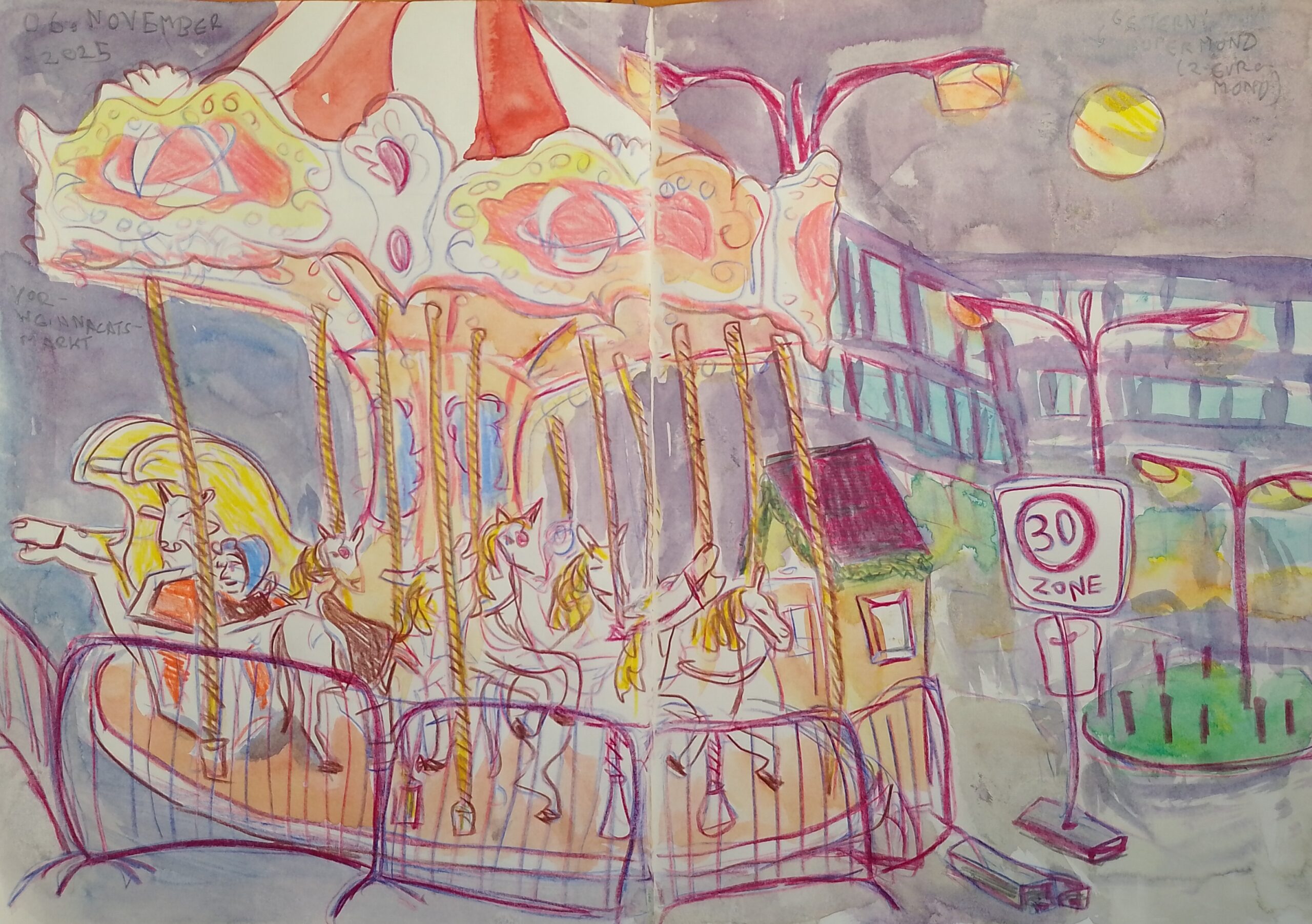 Karussell bei Mondschein von monika | Nov. 8, 2025 | Dortmund zeichnen | 0 Kommentare Letzten Donnerstag, zeichnen im Dunklen: das Vorweihnachtsmarktkarussell an der Petrikirche (mit Supermond im Hintergrund). Kommentar absenden Antwort abbrechenDu musst angemeldet sein, um einen Kommentar abzugeben.
