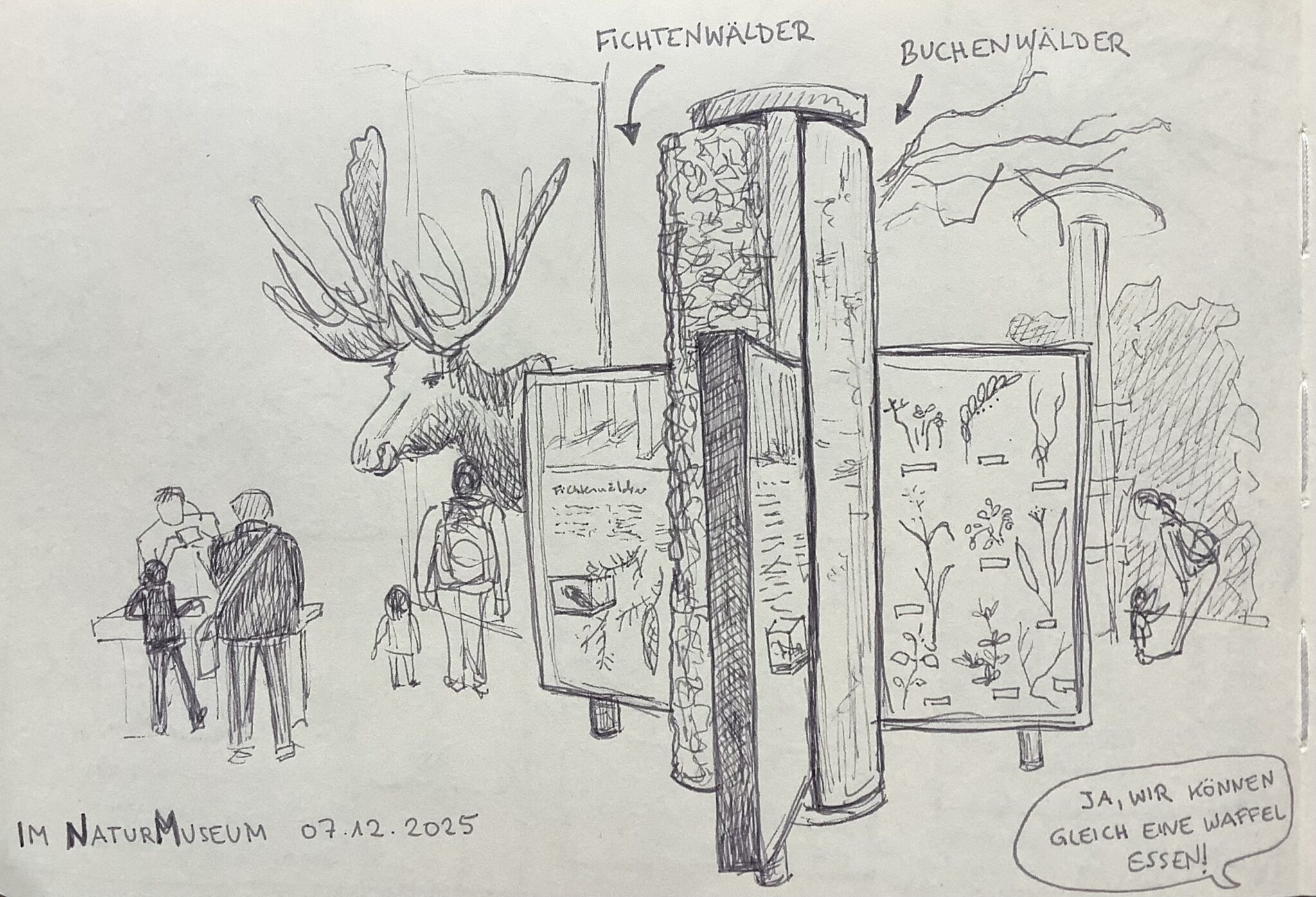 Im Naturmuseum von Anna | Dez. 7, 2025 | Dortmund zeichnen | 0 Kommentare Sonntags im Naturmuseum. Kommentar absenden Antwort abbrechenDu musst angemeldet sein, um einen Kommentar abzugeben.