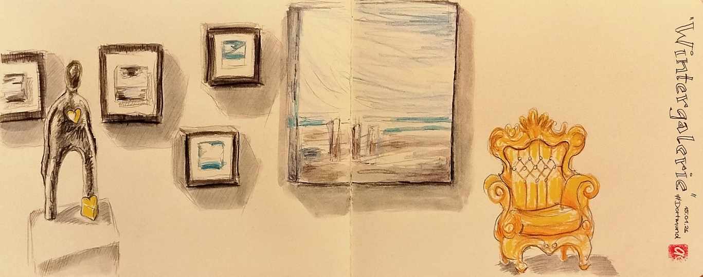 Donnerstagstreffen im Bereich des ehemaligen Kaufhof – Gebäudes. Diesmal blieb ich drinnen. Die abstrahierten Meeresgemälde von Heike Onnertz waren meine Favoriten.