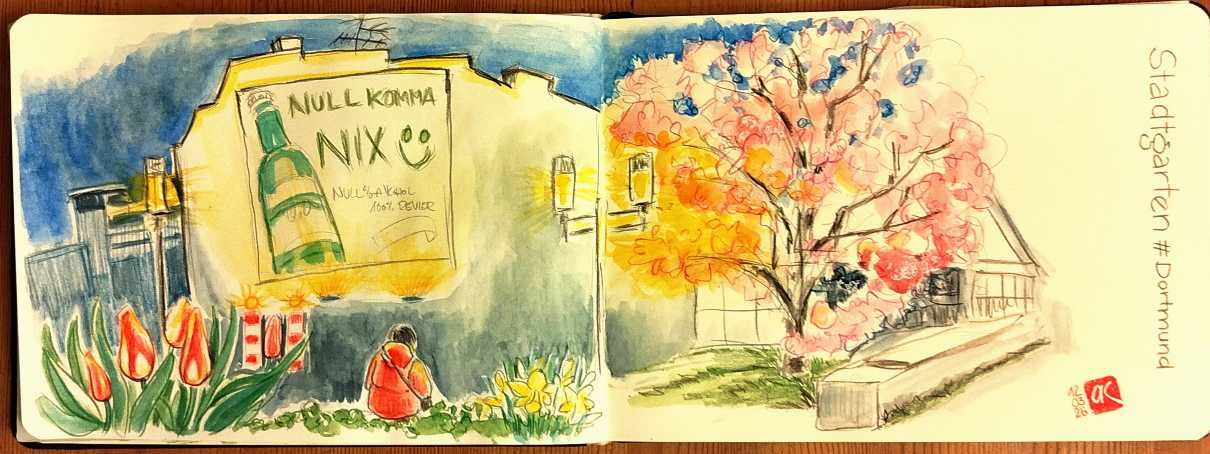 Stadtgarten von prokrasti.nette | März 12, 2026 | Dortmund zeichnen | 0 Kommentare … wo das Rot erster Tulpen mit den Barken der obligatorischen Baustellen harmoniert und die Baumblüte Frühling erahnen lässt. Kommentar absenden Antwort abbrechenDu musst angemeldet sein, um einen Kommentar abzugeben.