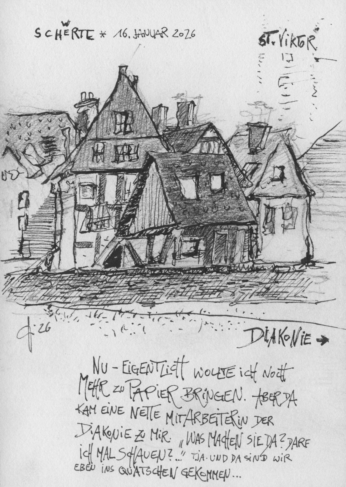 Zu Besuch in Schwerte von Guido Wessel | März 12, 2026 | Allgemein | 0 Kommentare Mitte Januar in Schwerte. Die Frau im Gym und ich auf meinem Höckerchen am Wuckenhof in Schwerte.• Grafit 8B und Füller Fude de Mannen Kommentar absenden Antwort abbrechenDu musst angemeldet sein, um einen Kommentar abzugeben.
