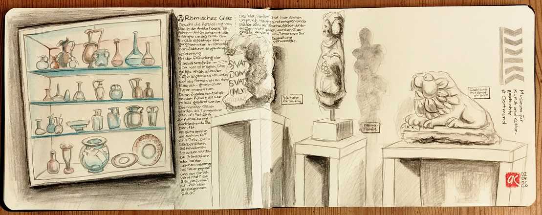 MKK – Römisches Glas von prokrasti.nette | Apr. 4, 2026 | Dortmund zeichnen | 0 Kommentare Donnerstagstreffen bei regnerischem Wetter. Die zarten Glasbehälter im Museum hatten es mir angetan und ich habe versucht, die Lichtstimmung zu Hause zu intensivieren. Der Infotext steht neben der Vitrine. Kommentar absenden Antwort abbrechenDu musst angemeldet sein, um einen Kommentar abzugeben.